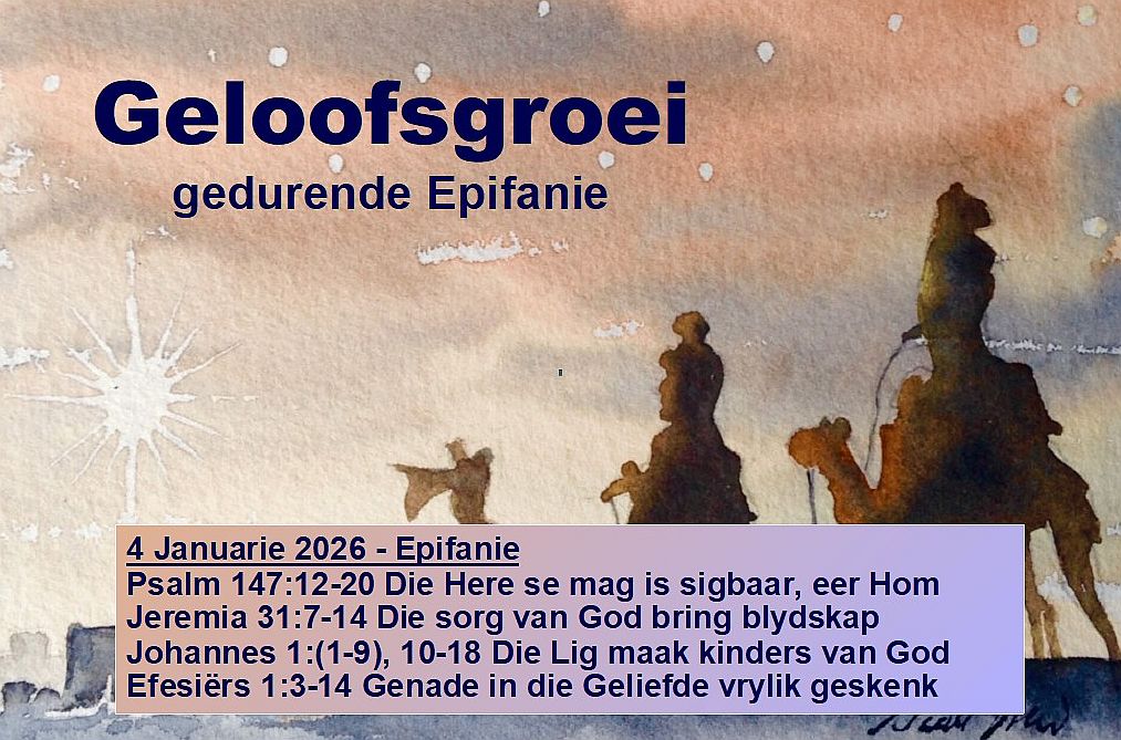 In teologiese materiaal word aangeveel dat ’n goeie manier om hierdie perikoop te benader is om na dit te kyk vanuit die hoek van die sestiende vers: “Uit sy oorvloed het ons almal genade op genade ontvang.” Juis omdat ons hierdie teksgedeelte lees gedurende die laaste dae van 2025 en die eerste dae van 2026, kan dit ons dalk op ’n besondere manier raak en inspireer. Voor ons troon die werklikheid van Maandag 5 Januarie, wanneer die vakansieseisoen vir baie van ons amptelik verby is. Ons is nie net platsak nie (dit is immers Januworrie), maar ook emosioneel dalk nie so opgewonde oor die terugkeer na ons normale omgewing en/of lewenswerklikhede nie. Soos een kommentator dit verwoord: “We feel depleted”. Die punt van ons teks is dat daar ’n ryke volheid, ’n oorvloed, is wat ons in Jesus, as die Woord wat vlees geword het, ontvang het. Die volheid/oorvloed van Jesus Christus spoel (“wash”) oor ons wat Hom volg, aan wie die wonderlike voorreg geskenk is om “kinders van God te word”, soos vers 12 dit verduidelik. Dáárdie Here Jesus vul ons lewens gedurende ons aanpak van die reis deur 2026. Ons is nie leeg nie, ons is nie oorweldig deur bekommernis en onsekerheid nie, ons is nie neergetrek deur die lewenswerklikhede wat ander mense tot bedruktheid stem nie. Ons is gevul/oordek/omring/ondersteun deur die Here Jesus wat oorvloedig genade op genade aan ons betoon.