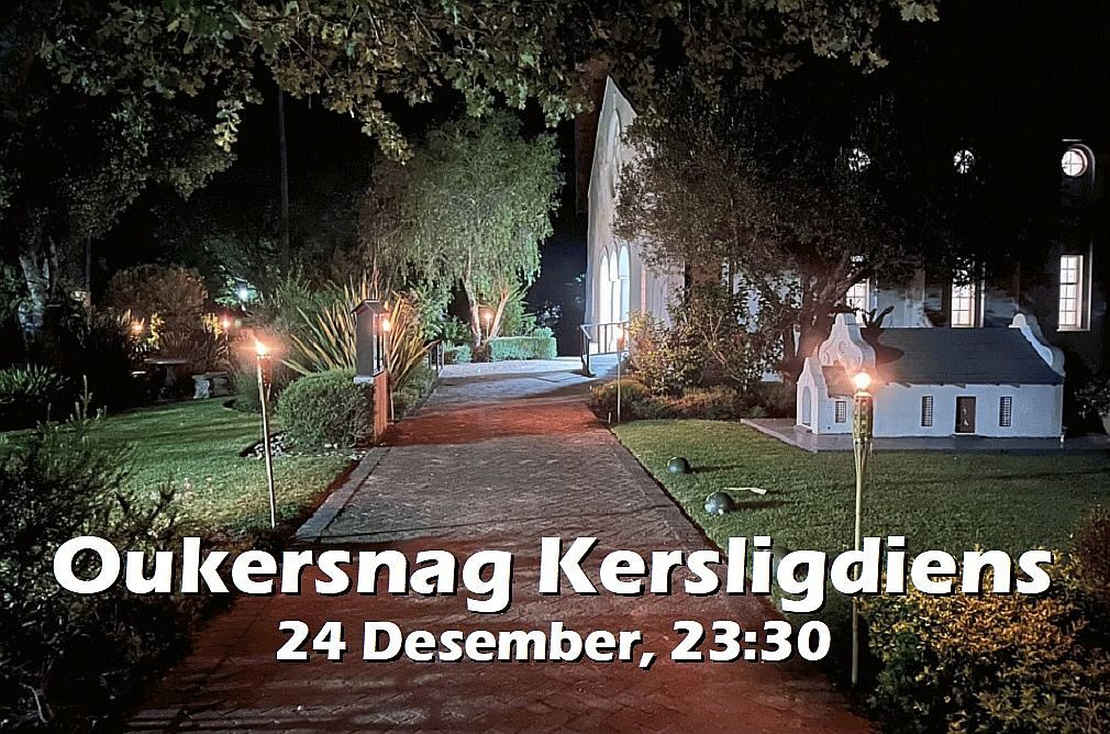 Indien jy kans sien, kom deel in wat waarskynlik die laaste Oukersnag Kersligdiens op Wittedrift sal wees. Bedieninge kom en gaan en dit lyk asof dit dalk tyd is om hierdie spesifieke bediening af te skaal. Hierdie Woensdag om 23:30 in die kerkgebou op Wittedrift sing ons kersliede, luister ons na kerstekste uit die Bybel, en spandeer ons gebedstyd saam met die Here Jesus. Om middernag sing ons saam “Stille nag”, waarna ons huiswaarts keer.